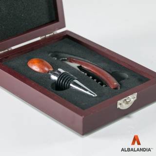 SET PARA VINO 2 PIEZAS CROMADO / MADERA CON ESTUCHE DE MADERA