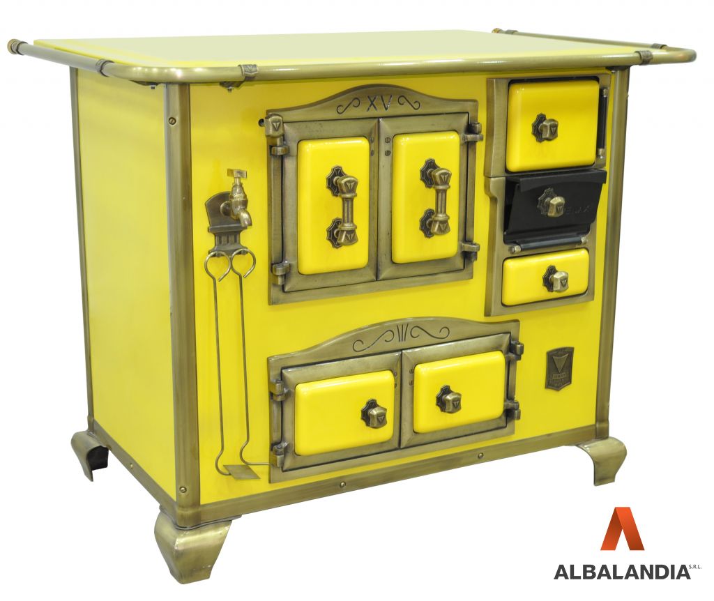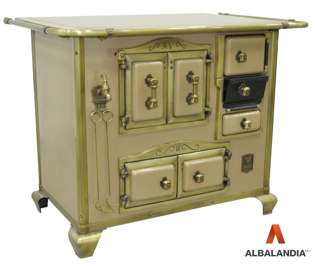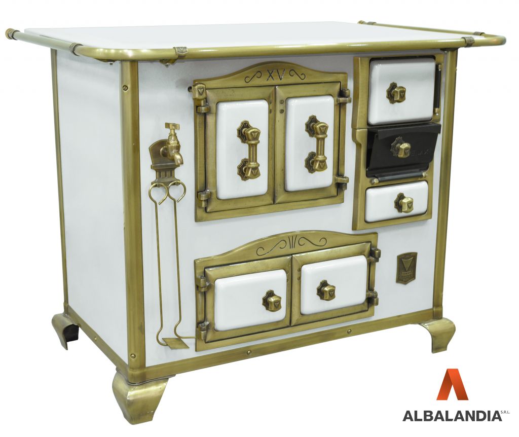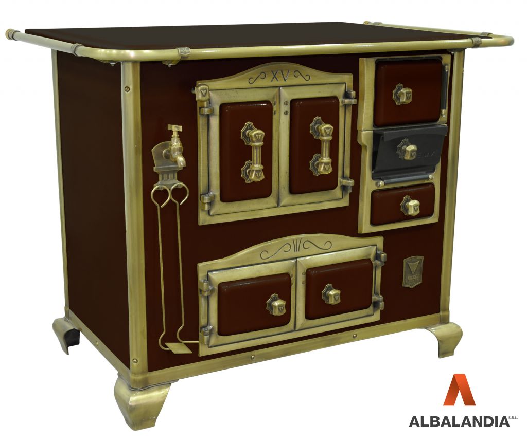 - Tornera de la caldera y perfiles verticales y horizontales con acabamiento en oro envejecido