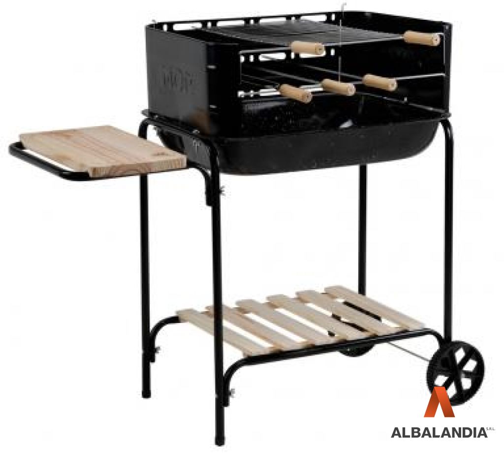 CUERPO EN PLACAS patas de acero esmaltada en tubos de acero acabado de pintura NEGRO DE AGUA BASE, 0ACESSÓRIOS cromo, para los utensilios categoría de cartón para la barbacoa, ruedas para facilitar el transporte.